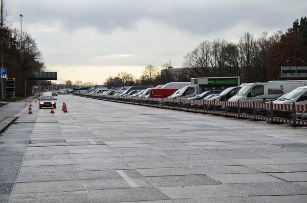 A kiállítástól a múzeumig egy negyven méter széles út vezet. 1,5 kilométer hosszan épült a harmincas években, be mélyen Reichsparteitagsgelände-re, a nagy náci épülettengerbe, ami ma már inkább csak egy nagy park hol nagy, hol óriási romos épülettel. Az út neve egyszerűen Große Straße, azaz a Nagy Út. Fekete és fehér gránitból rakták végig, szigorúan 1,2 méteres oldalhosszúságú lapokból, ami egész pontosan két porosz díszlépés. Eredetileg két kilométeresre tervezték, de – ahogy nagyjából semmit a placcon – nem tudták befejezni; a háború kezdetéig építették. Hogy a gránit és a német kivitelezés milyen jó páros mutatja, hogy az út meghagyott része nemhogy fennmaradt, de egy szakaszán ma autók járnak, parkolnak.