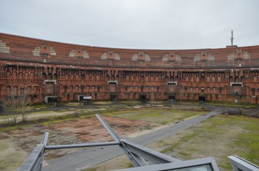 Ahogy a Harmadik Birodalom építészetének általában, a nürnbergi náci épületek szellemi mintája is az ókori Róma volt. Azon a nem mellékes tényen mondjuk elcsúszott az ideológiai alapra helyezett építészet, hogy a germán törzsek az árja Róma szemében rühes kutyafalkák voltak, de Hitler idején még nem volt két kattintásra Wikipédia. Rómára a Dutzendteich-en ma leginkább a Kongresszusi Központ hajaz, az eredeti tervek szerint rá is vert volna a Colosseumra: 70 méter magasra tervezték, lett volna teteje is, de a háború lekötötte az energiákat, így végül az elkészült boltíves karéj 39 métere a csúcsmagasság. Ha nem építik ki benne ezt az emlékező centrumnak eufémizált múzeumot 2001-ben, ez is csak egy lenne az itt pusztuló romok közül. Mert pusztul itt minden.