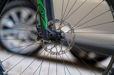 A futóművel viszont nem jutottam dűlőre, ez az ipar egyik vezető gyártójától, a Rock Shoxtól érkezik, viszont ez a Reba RL villa eléggé a modellcsalád aljáról jön. Nincs sok állítási lehetőség, a kormányra épített karral zárható a mozgás, ezen felül a húzó fokozati csillapítás és a villa előfeszítése hangolható. Utóbbi - mivel levegős villáról van szó - levegő ráfújásával, a becsúszószáron lévő skála még segít is megtalálni az ideális értéket. Ezzel még nem is lenne baj, de gyanús, hogy a villában még az ork-takony állagú gyári olaj lötyögött, ezért nagyjából lehetetlen jól beállítani, sokszor éreztem azt, hogy komolyabb tempónál a villa már nem tud mit kezdeni a tereptárgyakkal, és csak pattog a kerék lefelé a lejtőn.
