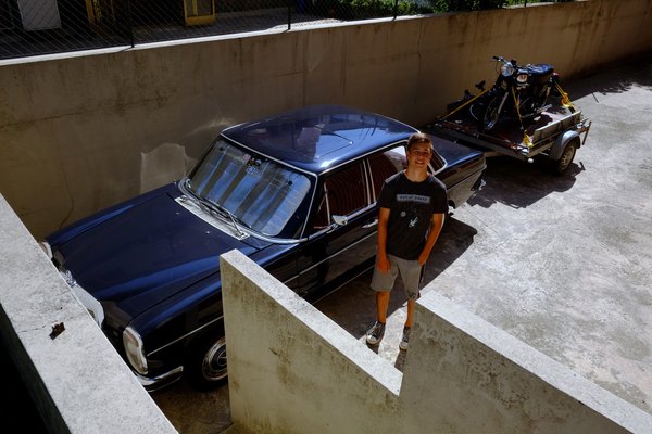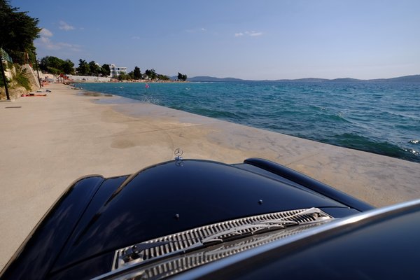 Van azonban, ami messze várakozás felett teljesített – voltaképpen olyan jól, hogy kis híján feledteti a Bertone hiányát. Ez a Kozma Zsolti barátomtól még tavaly vett, akkor szemre egyben levő, műszakilag azonban legfeljebb félkésznek mondható, kék, hathengeres, benzines állólámpás Mercedes, a Nessy. Bő egy év leforgása alatt förtelmesen ügyetlen, csak részleteiben működő, fullasztóan büdös, ordítóan szélzajos, helyenként az életveszélyesség határát (összeakadó ablaktörlők, hiányzó spricnirendszer), benzinzabáló (15-18 l/100 km között), néha lerohadó, máskor fuldokló, közepesen elegáns dísztaligából kellemes, finom, vállalható veteránautóvá vált.