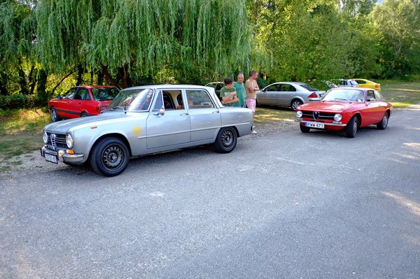 Első nap leugrottunk vele a Vadása-tóhoz Kozma Zsolti barátommal, másnap hazatértünk, röfögve élveztük az út minden percét. Egy héttel később, szombat délelőtt összefutottunk Varga Bálinttal, akit a Parkoló Parádén rendszeresen előforduló, fekete alukerekes, ezüstszínű Giuliájáról ismerhettek, s egy kis pilisi autózás során a két Alfánk (hiszen felfánk nincs) segítségével megpróbáltuk áttéríteni Littner Zsolti Merci-mániás barátunkat Milánó termékeire.