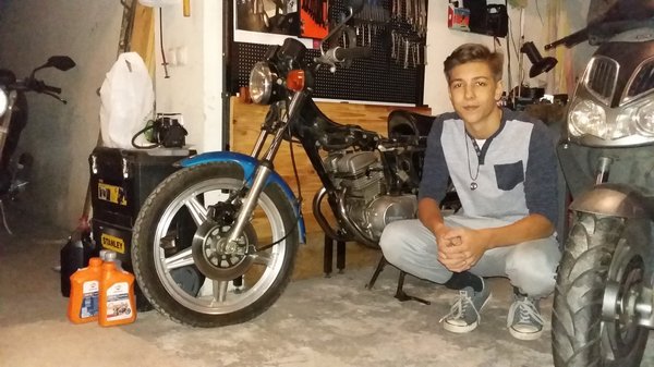 Két nagy másik ugrás is bekövetkezett – Bálint fiam motortulajdonos lett, és Smartguru jóvoltából egy csinos kis CB125 T Hondára sikerült szert tennie. Egyedülálló szerkezet, mert a nyolcadliteres blokk ellenére kéthengeres, nagyon finom gép, közelről mindene ékszerszerű. Akkor készült, amikor ezt a kategóriát komolyan vették a Hondánál, és úgy is csinálták meg az egész járművet. Most nem írok róla többet, mert a szerelések sorában el szeretnék jutni egy nyugvóponthoz, amikor körbe lehet tekinteni a tájon és elmélkedni. Akkor jön róla valami hosszabb.