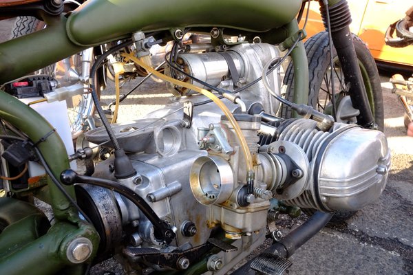 Az a tank rajta egy műremek, s nem kevésbé az ülés. Mindkettő oly harmóniával követi a váz adta formákat, hogy szinte hallani véljük a tibeti erdő mélyén megbúvó buddhista templom harangkondulását. A színek összhangja is parádés: katonai zöld, matt fekete, durván öntött és megmunkált orosz alumínium és egyetlen színfoltként a barna ülés. Mennyivel bénább lenne feketével, ugye?