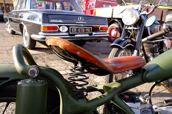 Az apró, hátsó csőlámpa is jó geg, kiválóan illenek a stílusba a háború előtti korszakot idéző külső héblik a kormányon, csak a kipufogó túlságosan kínaikróm, túl csillogós halfarkas vége zavarja a szememet - remélem, majd lassan hozzáöregszik az összképhez. Le a kalappal gép, gazdája és alkotója előtt, ritkán lát az ember ilyen jó arányérzékkel megépített Uralt - és még a hangja is állatjó volt.