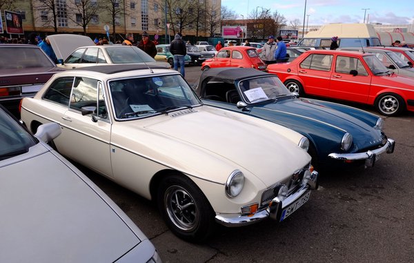 De akadt ott még érdekesség. Tuningolt kontyos Steyr-Puch versenycsíkokkal, ennivalóan szép Triumph Spitfire (kipróbáltam, beleférek!), amit alig pár hónappal korábban hátulról rommá tört egy furgon (nem vettem észre, hogy ott autó megy - mondta az ember), vászontetős MGB GT (rajta hozzá való Webasto-vászontetővel).