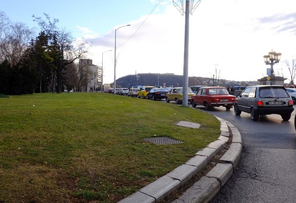 Tény, pokoli volt a Roosevelt téri dugó, s az is tény, hogy csak felerészben okozták a taxisok és a városnéző buszok - a másik felét mi tettünk hozzá. De legalább volt mit nézegetni ácsorgás közben, mert vajon milyen gyakran lát az ember ennyi Ladát és Skodát manapság a Lánchíd tövében?