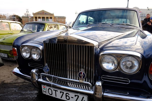 Tehát szigetekre szakadozva beúszott a veterános csapat a Hősök teréig, ahol már folyt a fotózkodás a lezárt részen (igen, legálisan), ott néhányan leszakadtak, a többiek tovább az Andrássyn, be a Roosevelt térig, ahol borzalmas dugóba ütköztünk. Ami addig zajlott, az az év egyik nagy ajándéka lett - mert azért a feldíszített, a romantikus téli napfényben úszó Andrássy, rajta az oda-vissza irányban zúzó mindenféle öreg Ladákkal, Skodákkal, Citroenekkel, cápa BMW-kkel, japán rizsrakétákkal, Bogarakkal és gömbölyű Trabikkal nem mindennapos látvány, benne autózni valami hasonlóval és az egész, fél városnyi buli részesének lenni pedig tényleg klassz.