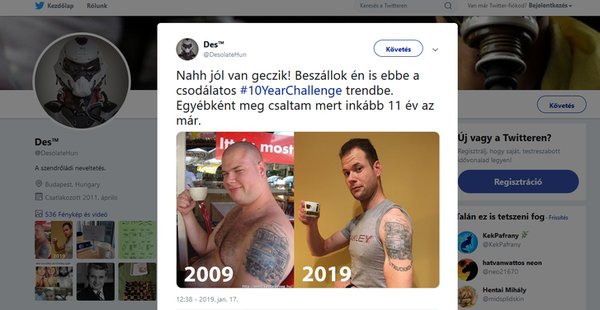 A közösségi média aktuális őrülete a #10yearchallange. A játék, aminek a régi barátoknál csak az arcfelismerő algoritmusokat fejlesztő cégek örülnek jobban. A lényeg: meg kell osztani egy képpárt a világgal: balra egy kép a tíz évvel korábbi önmagadról, jobbra egy a mostaniról. Nálunk ezt a kihívást magasan Ákos nyerte, akinek üzenete a nagyvilág felé: a test változik, de a bőr alá lőtt IFA örök.