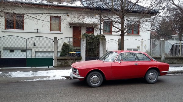 Basszus, nem úszom meg a polírt. Bár Gabi felajánlotta, hogy nekem, a barátnak, anyagárban megcsinálja az autót (és annál jobb Peter Mullinnek sem kell a Bugatti Atlanticra), nem akartam a sós aszfalton Kistarcsára mászkálni a még szinte sótlan Bertonével. Tudom, ezek a régi Alfa Romeók nagyon jól állják a sarat, ezért is jellemzően rozsdamentesek 50 év után, de az ördög nem alszik, hátha pont az enyémnél nem volt olyan sziklaszilárd a technológiai fegyelem és emiatt kicsit hajlamosabb rohadásra a többinél... Nem kenyerem a kockáztatás. Nem az időjárással és a latyakkal szemben.