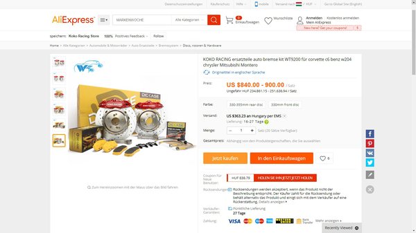 A Corvette C6 egy erős sportautó, viszont emellett nehéz is, ezért a mérnökök valószínűleg kétszer is meggondolták, milyen féket tesznek alá. Persze van, akinek ez nem elég, és a teljesítménynövelés mellett a fékeket is erősebbre cserélné. Akárhogy is, valószínűleg ez lenne az utolsó alkatrész, amit az Aliexpressről szereznék be, pedig lehetőség van rá.