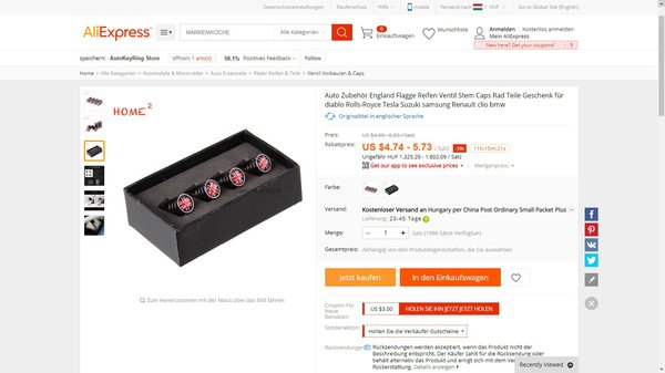 Pedig ott van a lehetőség az interneten. Bármikor rendelhet az Aliexpresspről például union-jackes szelepsapkákat, persze csak ha nem centizte ki a vásárlást, és maradt rá öt dollárja – egész pontosan 1406 forintja. Kicsit fura lenne, hogy az olcsóbb modellek 5800 dolláros (1,6 milliós), 21 colos alumínium felniszettjét angol zászlós spiáter dugaszokkal díszítené valaki.