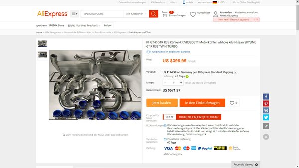 A Nissan GT-R motorja alapból nagyon erős, de ez nem szokta visszatartani a tuningműhelyeket. Eleve két turbóval fújják meg, de a motorba áramló levegőt előtte intercoolerrel hűtik. Nagyon fontos, hogy az alkatrészek jó minőségűek és tartósak legyenek, mert ha egy 1000 lóerő fölé húzott GT-R-ben bármi elpattan anyaghiba miatt, milliókat dobhatunk a kukába. Már csak ezért se mernék IILK8 márkájú intercoolert venni az Aliexpressről.