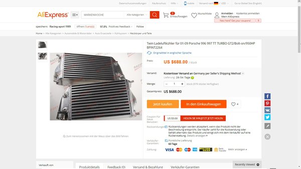 Az Aliexpress leírásában szereplő 950 lóerőt nem tudom honnan szedik, vélhetően ennyire felhúzott autóhoz ajánlják a köztes hűtőt. Ha valaki ezekkel a közel 200 ezer forintos intercoolerekkel szeretné éltetni ezt a teljesítményt, félek, rövid életű lesz a Porschéja. A komolyabb tuningszettek inkább 500 és 800 ezer forint között kezdődnek, de ahogy minden esetben, határt itt is csak a pénztárcánk szab.