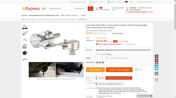 Ha kinagyítjuk a képeket, egyből feltűnik, hogy vannak helyenként csúnya hegesztések, és itt is megvan, ami a gagyi kipufogó alkatrészeknél. Ugyan kevesebb hőt kap, de így is melegszik, és rengeteg rezonálást kell túlélnie, amit ezek az illesztések nem feltétlen fognak tolerálni. Ráadásul a leírásban az is szerepel, hogy bírja a magas turbónyomást, amit már tényleg nehéz elhinni, aztán ki tudja? Az az egy bátor vállalkozó biztosan, aki kiadott rá több mint 70 ezer forintot. Az Aliexpress szerint az elmúlt hat hónapban azt az egy darabot adták el.