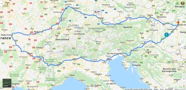 Tehát 30-án, kedd hajnalban indulunk, első éjszakai megállónk Besancon lesz, 1234 kilométerrel odébb. nyugatra. Ludvigh Karcsival leszünk ketten a fedélzeten, ő isteni videós, szuper drónja is van, remélem, engedik majd használni is.