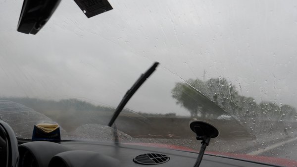 A kérlelhetetlenül szakadó esőben olyan hetykén lavíroztunk a rettenet forgalomban, hogy öröm volt nézni a bizonytalanul lemaradó puhányokat a modern autójukban. Bár ehhez a nézéshez azért meg kellett erőltetnem magam, míg Csikós előtt szorgalmasan törölt az egy szem lapát, én nagyjából ennyit láttam: