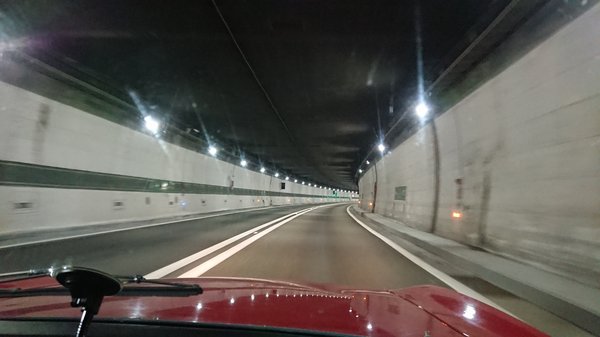Aztán 45 euróért átvágtunk a vonulat alatt egy 12 kilométeres alagúton. Kaptunk rövid tájékoztató kiadványt is a megfelelő föld alatti viselkedésről: lassan menj, messze az előtted lévőtől. Így tettünk, átértünk.