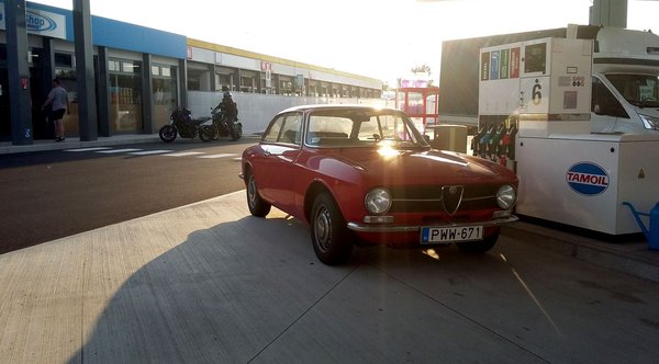 Pedig olyan csodás volt az egész út a kis Alfával, igazából olyan volt, mint egy óriási, szélevásznú, élesben zajló veterános álom. Nem is tudom, élveztem-e ennyire autót az elmúlt húsz-harminc (vagy több) évben. Az apró, öreg ezerhármassal ez a kocsi lazán tartja a 130-140-et, s még bőven van benne tartalék (hiszen a gyári végsebessége 177, ami űrborzalom lehetett 1971-ben még), de van hozzá futóműve, fékje is. Egyáltalán nem idegen szerep neki, beállni a modernek közé a gyors sávba. Hihetetlen.