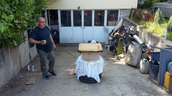 Miután elhúztak, tettem egy kört – még kopnak be az új fékbetétek, ezért kicsit puha a pedál, de a lenyomására nem húz az autó, ami a legfontosabb. Száraz minden, a betétet pedig majd az út elején, néhány fékezéssel bekoptatom. Legégetőbb probléma megoldva. Nekiálltam a tavaly, Ornbauban vett lökhárítónak is, amit csak több darabba szétszerelve tudtunk onnan elhozni, mert máshogy nem fért be a csomagtartóba. Most ki kellett pucolnom azokat a még-nem-tudom-milyen állapotú krómokat, rozsdátlanítanom a lökhárítóvázat, festenem, összecsavaroznom mindent. Hát... el lehet tökölni két órát egy kis pucolgatással, festegetéssel.