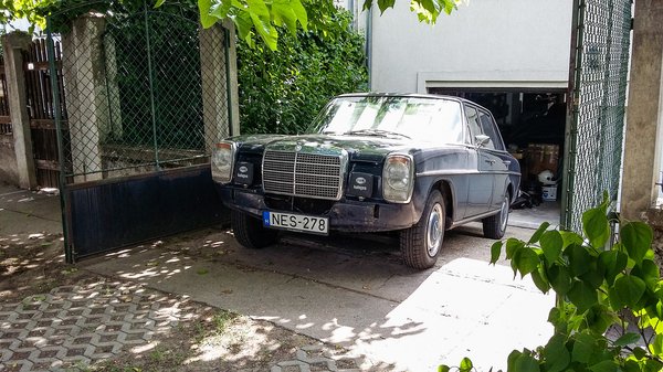 Bár nem Mercedes, azért nagy krómmaszkos és króm lökhárító van rajta – Kozma Zsolti korai, hosszú tengelytávú Rolls-Royce Silver Shadow-ja is jön Ornbauba, reméljük, nem veszik majd észre a németek, hogy nem Mercedes. A sziluettje mindenesetre hasonló. Zsoltinak is van ugyan öreg Mercije, az a 280 SE W108-as, amit abból a pénzből vett Franciaországban, amit én adtam neki a Nessyért két évvel ezelőtt, de arról az autóról először kiderült, hogy repedt a motorblokkja, aztán amikor a föld alól sikerült neki túrni egy ép blokkot, arról rögtön tudni lehetett, hogy felújítás után kiált. A projekt itt el is akadt, talán örökre, mert égen-földön nem kapni első túlméretes dugattyút a 280 SE motorhoz. A sárga fényszórós francia csoda azóta az udvaron rohad. Tehát maradt a Rolls Mercedes-pótléknak.