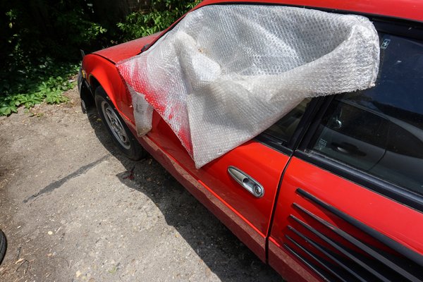 Hiába egyre több a roncs mindenhol, az nagyon ritka, hogy egy kertvárosi telek közepén letámasztanak egy Ferrarit, majd hónapokig magára hagyják. Ezért is figyeltem fel olvasónk, Zoltán márciusban küldött levelére, aki Zugló szívében, egy játszótér mögötti műhely udvarában pillantott meg egy piros kupét.