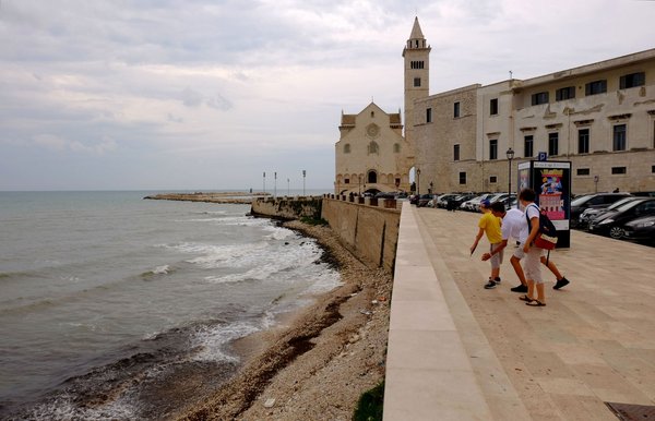 Bariban szakadt az eső, de Bariért nem kár, mert Bari egy nagy, kellemetlen kisugárzású kikötőváros, egy percet nem akartunk ott tölteni. Húztunk tovább Traniba, egy korai, teljesen néptelen városjárásra, s onnantól meg kvázi végig tökéletes időnk volt az utolsó Pugliában (Puglia – a terület) töltött napunkig, amikor épp megint Traniból hagytuk el a csizmasarkot. Soha rosszabbat.