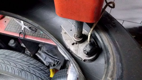 A merítőberendezésben (lavórszerűség egy keréklenyomó karral) kiderült: a parányi lyuk a futófelület szélén túl, de még nem az oldalfalon van, ott, ahol kicsit 45 fokban fut a gumi. Mutogatja nekem az ember – ezt valami tűhegyes dologgal kiszúrták, mert becsípődésnek nyoma sincs, az utcáról pedig a kerék oda nem kap fel csavart, szöget. Magyarázza – nagy nehezen megértettem – hogy régebben szúrhatták ki, talán órákkal ezelőtt, aztán a rugózás, terhelés kicsit szétnyitotta a sebet és lassan elillant a levegő.