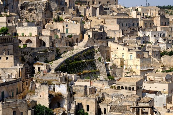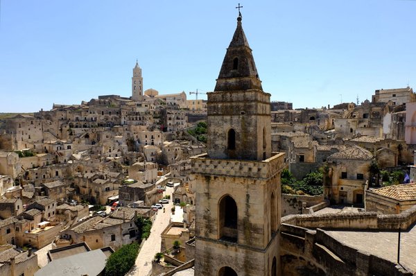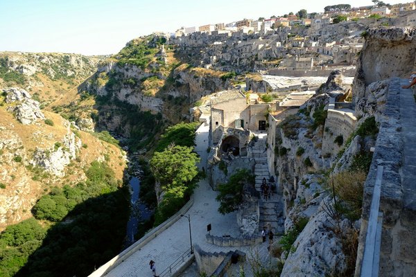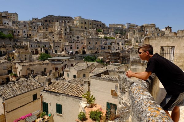 Nekem, ami tényleg a döbbenet határát súrolta, az Matera volt. Ez egy hétezer éve létező település, amely már megvolt, amikor erre jártak az etruszkok, a görög kor csak egy fuvallat volt neki, a római időszak pislantás volt az életében, az pedig, hogy most éppen olasz a város, csak egy múló rosszullét. Alapvetően egy folyószurdok mellett kimagasló, elég puha, meredek hegybe vájt városka ez.