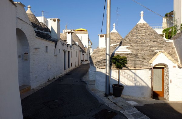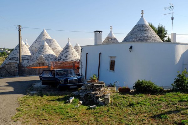 Lássuk csak, mi volt még. Ja, igen, a trullis környék is nagyon bejött. Ide a locorotondói szállásunk kapcsán cseppentünk, amely maga is egy trulli volt, s ezt az építészeti furcsaságot jobban meg akartunk nézni. A trulli kúpház, pontosabban kúpokból álló ház, a táj parasztjai laktak, és sok helyen ma is laknak ilyenekben. Minden szoba nagyjából kör alakú, parányiak az ablakok, de legérdekesebb a tető, amely precízen méretre vágott, habarcs nélkül csúcsosra pakolt kövekből áll.