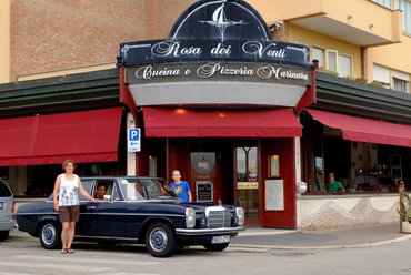 Onnan a szomszéd város Porto Garibaldi, s mi a pincében talált biciklikkel közelítettük meg mindig, a kis csatornán átkompozva minden második este. Itt kevés a turista, viszont van egy jó móló, illetve találtunk egy Rosa dei Venti (szélrózsa) nevű éttermet. Jobb halkaját azóta se ettünk, mint ott, sehol. Annyira megszerettük, hogy azóta több más utunk végét is rákanyarítottuk Porto Garibaldira, csak hogy megint ott költhessünk el egy vacsorát – jártunk itt Erával, a Bianchival... és most Nessyvel is.