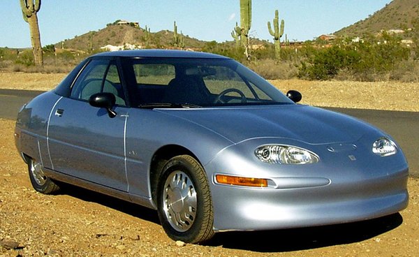 Az EV1-et kényszer szülte. Kaliforniában már akkoriban máshogy gondolkoztak a légszennyezésről, mint ahogy az USA törvényhozói általában, ezért az állami levegőtisztasági hivatalnál született egy rendelet, amely szerint 1998-ra az összes eladott autó 2%-ának elektromosnak kell lennie. Ebből később nem lett semmi, de a GM ezt még nem tudta akkor, és mivel egy villanyautós fejlesztés már évek óta folyamatban volt náluk, 1996-ban ki tudtak jönni az EV1-essel. Az első generációba még ósdi ólom-savas akkumulátorokat pakoltak. Ezekkel 110-160 kilométereket lehetett elmenni egyszerre, míg a '99-ben kiadott Gen II-es EV1-esek már NiMH akksikat kaptak, abból már elmentek 160 és 230 kilométert is.
