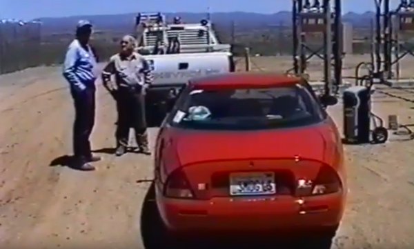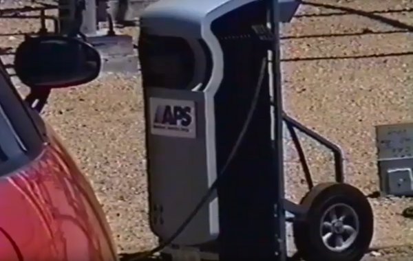 Megvenni egyik szériát sem lehetett, havi 299 és 574 dollár közötti dollárért bérelhették őket a felhasználók. Ezért assistance szolgáltatás is járt mellé, Kaliforniában és Arizonában pedig még egy egész kiépült ingyenes töltőhálózat is a szolgáltatás része volt. Talán még mindig akadnak délnyugaton elhagyott parkolók végében felejtett EV1-töltőkutak, ezt a lenti képet legalábbis 2012-ben lőtték, akkor már kábé tíz éve állt magára hagyva az a töltő. Szóval a nagy túra. Kris Trexler a legelső felhasználók között volt, 1996 december 5-én vette át az EV1-esét.