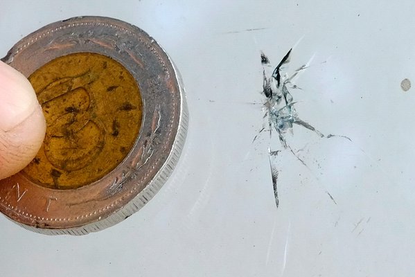 Oké, akkor jöjjön a kavicsfelverődés-javítás. Erről két nap telefonálgatás után megtudtam, hogy ez Nessyn már lehetetlen. Mert akkora hibát ugyan lehetne javítani, amekkora van rajta, de az egésznek csak úgy lett volna értelme, hogy a felverődést a keletkezéskor rögtön leragasztom celluxszal vagy Duct Tape-pel, hogy bele ne menjen a kosz. Ám a repedés még a Kozma Zsolti használata idejére esett, tehát jó két és fél-három éve ott lehetett. Lefotóztam, elküldtem mindenfelé, de a legnagyobb szakember is azt mondta – valamit esetleg tud javítani rajta, de tovább is fog repedni, látszani is fog. Ráadásul az ekkora és ilyen (a csillag alakú törés a legrosszabb mind közül) hiba javítása még jó drága is. Sok pénzért alig valamit? Feladtam. Akkor szélvédőhibával megy el tőlem, hiszen a vizsgán se szóltak miatta, mert nincs a látótérben.