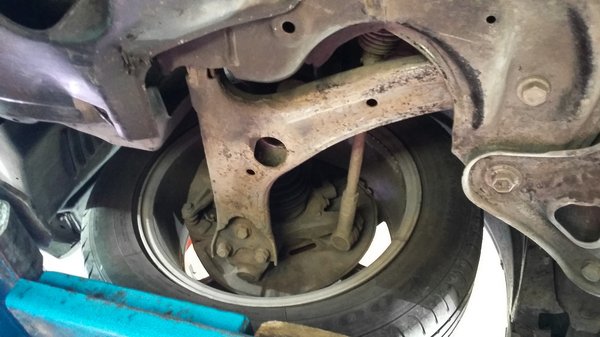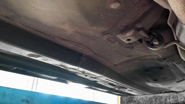 Meglepő, de mindenütt egybenlevéseket láttam, pedig azért szoktam én ötéves Range Rovereket, tízéves Audikat látni Karesz emelőjén és azok elég randán tudnak kinézni. Ez az autó pedig sokkal idősebb azoknál. De semmi, még a terelőlemezek is épek, csak a hátsó küszöbök belső lemezén, a kerekek előtt, illetve a lengőkarokon látok némi felületi pírt, de az is csak olyan, amire a legtöbben rá se hederítenének, a fotón sokkal rosszabbul néz ki, mint valójában. Luknak, mállásnak, lemezes korróziónak, bármilyen rendes, masszív kellemetlenségnek nyoma sincs.