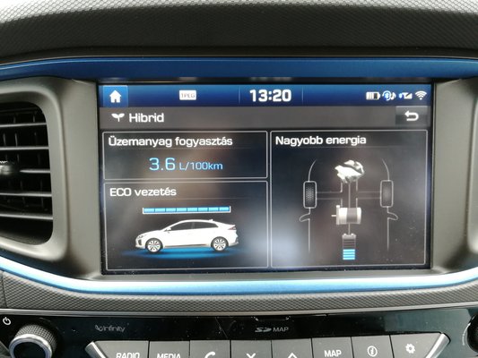 Viszont nekem fontos a teljesítmény, ami ugyan a katalógus szerint ott van, de szemben egy turbóssal, ez nagyjából addig tart, amíg az akksi bírja szuflával. Az Ioniq Hybrid esetében ez 1,56 KWh-nyi delejt jelent, és fogalmam sem volt, hogy ez mire elég. A vásárlás előtti próbaút meggyőzött arról, hogy egy autópályára felhajtás erőteljes gyorsítással még nem teszi vészesen próbára a rendszert. Ez némileg megnyugtatott. Megvettem.