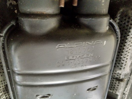 A tetőkárpit eredeti, gyári anyagú, ahogy anno. A kipufogó szintén eredeti volt amikor az autó a műhelyembe került, még az Alpina saját logója is látható volt a dobok palástján, és bár ezek cserére szorultak, tudtuk, hogy mit kell rendelnünk a gyártótól. A két, új gyári BMW dob egyébként nagyjából 320 ezer forintba kerülne, de itt más a motor, és a hozzá tartozó speciális kipufogódobokért majdnem pontosan háromszor ennyi pénzt kér az Alpina. Ha egy későbbi veteránvizsga volna a cél ezzel az autóval, akkor illik a teljes eredetiségre törekedni.