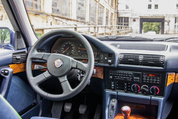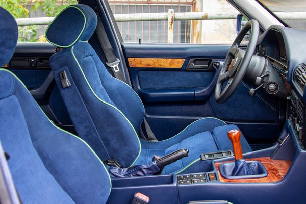 A nagyon ritka B10 Biturbo felújítása két éve kezdődött. Új fényezést kapott, volt, hogy csíkok nélkül tengődött, volt, hogy világos ülések voltak benne. Ez utóbbit nem reklámozzuk, mert nem állt jól neki, csak annyit mondunk: angolok. Szerencsére az ülés alján megtalálható volt egy papír, melyen feltüntették, hogy kárpitozása eredetileg Alpina Alcantara Blue. Ez is került most vissza, teljesen új állapotúra restaurálva.