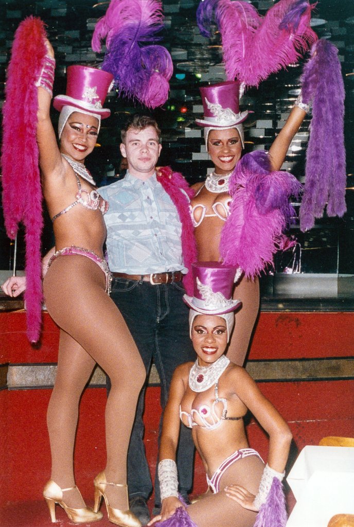 Amikor az alábbi, revüs csajokkal készült a fotó, egy folklór show-t előadó helyre vittek minket vacsizni, csak ott ugye nem kalocsaiban ugrálnak a lányok cigányzenére, hanem mérsékelt mennyiségű ruhában szambáznak. (Mennyivel jobb lehet arrafelé néprajzkutatónak lenni, mi?) Itt ezekkel a csajokkal lehetett fotózkodni 10-15 dollárért, de persze ez a fizetős jelleg csak utólag derült ki. Mindegy, ennyit megért. Amikor beléptünk a Plataforma 1 nevű helyre, még csodás idő volt. Mikor elindultunk vissza, az utcán kidőlt pálmafák, szétszórt kukák, elképesztő pusztítás és özönvíz nyomai. A brazilok meg éltek tovább, úgy tűnt, hogy nincsenek meglepve.