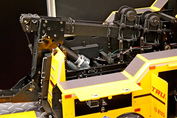 A Tamiya standjához érve messziről látszott, hogy az idei én nagy durranása valami kamionos dolog lesz. Mert hát egy 1:14 méretaranyú, rikító sárgára fényezett kamionmentő már elég messziről látszik. Hiszen az eredeti jármű is nagy, miért is ne lenne bő 75 centi hosszú, ha a tizennegyedére kicsinyítik.