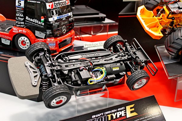 Kis csalás ezeknél a modelleknél, hogy az alváz, ami a tulajdonképpeni autó – hiszen a (általában) lexán karosszéria igazából csak dísz, cserélhető külsőség – egy alapvetően személyautós váz. Egy összkerékhajtású TT–01E alvázra csavaroznak négy teherautós kereket, és kész is a versenykamion – igen, még a hátsó tengely dupla kerekei sincsenek megoldva. Szóval viselkedésében semennyire sem hasonlíthat egy elől-hátul merevhidas, hátsókerékhajtású kamionra, hiszen mind a négy kereket független futómű vezeti.
