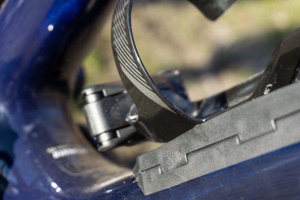 Ennél lényegesen fájóbb, hogy egész könnyen beakad az ember lába a rugóstag kompresszió-állító karjába. Többször furcsa volt, hogy olyan furán kemény volt a hátsó futómű, amikor leértem az ösvényen, eleinte betudtam a feledékenységemnek, egyszerűen elfelejtettem kinyitni a tagot. Aztán a sokadik ilyen esetnél tűnt fel, hogy nem év vagyok trehány, csak akkora a kompresszió állítókarja, hogy könnyedén át lehet lökni térddel, ha az emberen még valami térdvédő is van, akkor végképp nem kihívás. Ha a saját bringám lenne, a második napon sikított volna a Dremel.