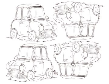 Nézd ezt Minit! Amíg surrog a grafithegy, meséld el róla, hogy a görög zseni bácsi, aki tervezte, pont ugyanígy skiccelte fel egy szalvétára az eredeti autó ötletét 61 éve, ahogy ti firkáltok most. Nézzétek meg, hogy ez a korai változat, aminek aprók a kerekei, hogy a lehető legtöbb hely legyen benne. Ha a gyerek nagyobb, moralizálhattok azon, hogy ma pojácáskodásból egy új Minire is akkora kereket kell tenni, ami mellett csoda, hogy még motor és emberek férnek bele egyáltalán.