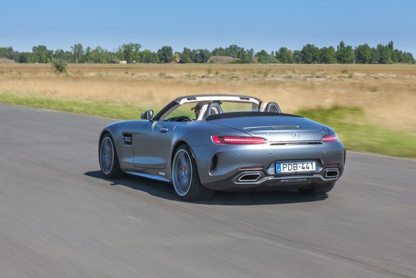 Egész ügyesen ellavíroztam az első néhány tesztautóval, se karc, se padkázás, valahogy sikerült magamra erőltetni a folyamatos figyelmet. Aztán felvillant a naptárban a Mercedes AMG GT C Roadster, azaz az alukasznis, V8-as, biturbó roadster. Öreg Mercikben nőttem fel, mindig közel állt hozzám a márka, ráadásul akkor már az MX-5-tel jártam, ami szintén roadster, hát nyilván kompetensnek éreztem magam a témában, lecsaptam az autóra.