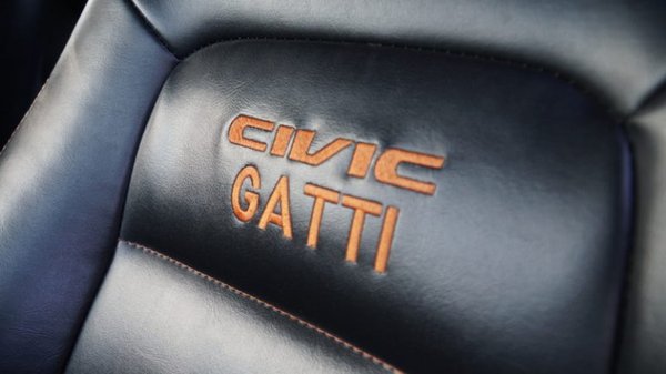 Az új tulajdonos azonban nem csak egy öreg Civicet kap Bugattiba csomagolva, hanem új hangrendszert, és újrahúzott üléseket is. Utóbbi egyébként rendkívül ízléses, az ülésen lévő Civic Gatti felirat viszi a prímet. Ezenfelül az autó kapott még egy új turbót és hűtőt, így már majdnem egy szinten van egy Bugattival.