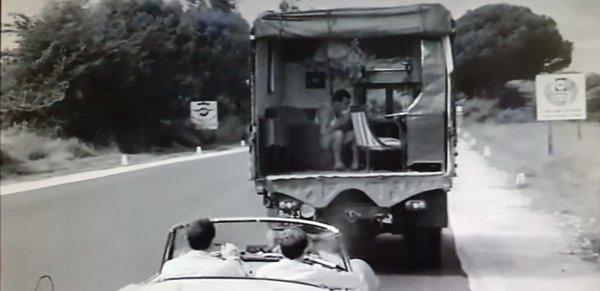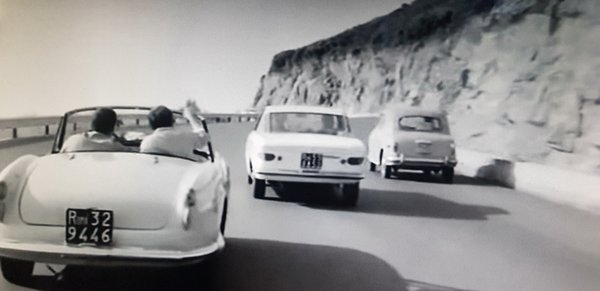 Személyes kedvenceimmel is tele van a film, például az olasz, konkrétan Alfa Romeo-gyártású Renault Dauphine-ekkel (bizony, ilyeneket is készített az aresei-portellói csodamárka, licencben), illetve szekrényajtós Lancia Appia III-akkal, pont olyanokkal, mint amiből a Teavaj, azaz a Giulia Nuova előtt, még a tervezgetés legelején venni akartam egyet, és azt hittem, az valami ritkaság. Hát itt majdnem annyi van belőle, mint Fiat 1100-asból, ami kábé olyan díszlet Risi filmjében, akár az útszéli fák.