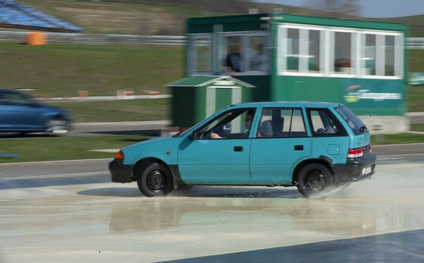 Mindig vannak újak, ezért röviden a pályákról. Az egész kemény pályás vezetéstechnikai tréningnek, mint műfajnak az az értelme, hogy felkészíti a szerencsés esetben tapadásvesztéssel ritkán találkozó átlagautóst arra, milyen, amikor megúszik az autója. Eltolja az orrát, megindítja a hátulját... nem árt, ha nem éles helyzetben, egy taknyos úton találkozol ilyennel először. A vízzel locsolt, műgyantával fedett pályákon körről körre kerülsz ilyen helyzetbe, azaz még egy kétórás tréning is elég lehet arra, hogy kialakuljon pár alap stratégiád, amikhez nyúlhatsz majd éles helyzetben. Hogy konkrétan milyen pályákon zajlik majd tréning, arról ezeken a hivatkozásokon tájékozódhatsz: rántópados pálya, ABS tesztpálya és lejtő- és hegymeneti pálya.