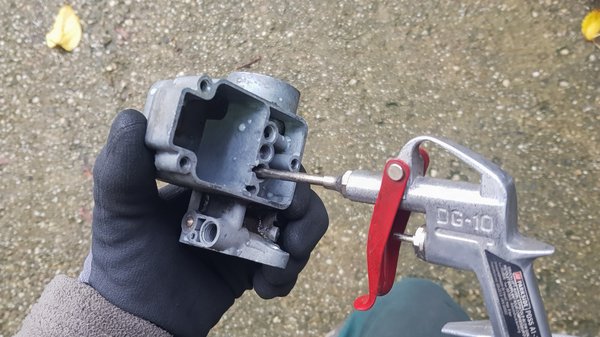 És igen, a fedélben levő előszűrőben sok-sok fekete gumitörmeléket találtam, olyat, amit in situ nem vettem észre. Biztosra akartam menni, ezért atomokra szedtem a karbit, ki és széjjel a fúvókatartókat, ki az úszót, a tűszelepet, annak házát, a kúpos zárású szívatót, a levegőállító csavart, mindent, épp csak darabokat nem törtem le belőle.