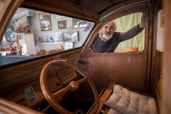 Modellként egy 1953-as Citroen szolgált, a Kacsának becézett 2CV. A 2CV-t 1948-től kezdődően 1990-ig gyártották, több, mint 5 millió példányban, és az ikonikus autó hírnevére a fából készült modell sem hoz szégyent, sőt. Készítéséhez a francia nyugdíjas többféle gyümölcsfát használt; körtét, almát, és diót. A karosszérián túl az utastér is szinte teljesen fából készült, egyedül a kilincsek, a műszerek, és érhető módon a gumik nem, de a felnik például már tartalmaznak fabetétet. Illetve valódi motort kapott az autó, hiszen a vezethetőség a projekt alapköve volt.