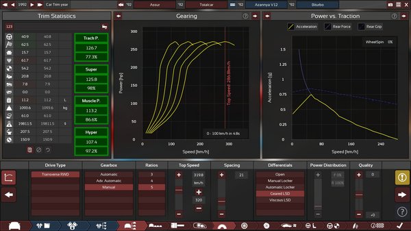 Olyat nem mernék állítani, hogy amire a program lehetőséget nyújt, annak sok köze lenne a valódi autótervezéshez. Itt egy hűtőrendszer méretezése egy szám megadásából áll – a valóságban ez több éves csapatmunka eredménye – de egy feltöltőrendszer kidolgozása is megvan nyolc paraméterből. Ezzel együtt ez a téma legalaposabb, szórakoztató célú megközelítése, amivel eddig találkoztam. Itt nem csak egy kis tuningolgatásról van szó, ahol a játék lehetőséget ad rá, hogy leültessük az autónkat, tegyünk rá valamilyen szárnyat, netán kicseréljünk ezt-azt a motorban, hogy jobban gyorsuljon.