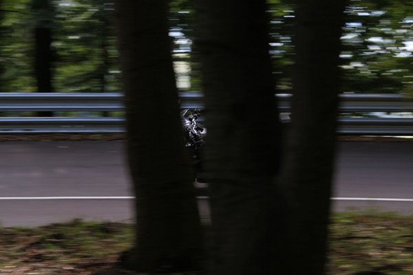 Ez a kép szinte egy feladvány, mert a BMW S 1000 XR egyfelől Waldóként rejtőzik a fák között, ugyanakkor rikító piros színével és a középre komponálással azonnal magára vonja a figyelmet. Ez a paradoxon végig feloldatlan marad, a szemlélő szinte érzi azt a nyugtalanságot, ami az S 1000 RR-ből származó soros négyhengeresből árad. (Exif infó: 1/320, F4, 70 mm, ISO 100)